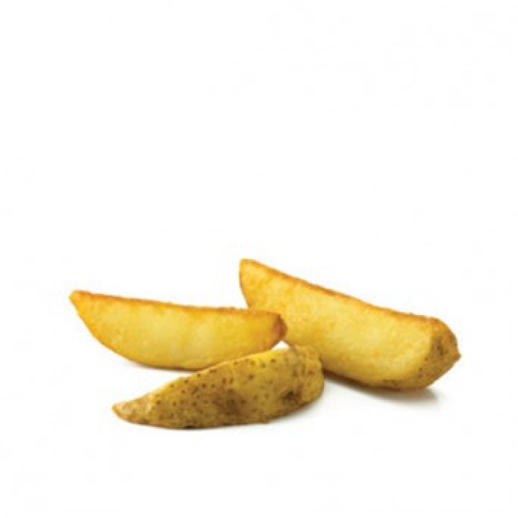 Kentang beku premium wedge (plain) with skin on (cut 1/8) yang kaya cita rasa mengandung canola oil/ soybean dan rempah-rempah.