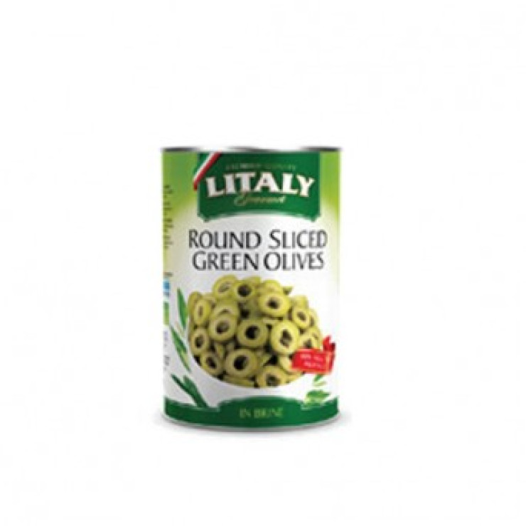 Buah zaitun hijau iris dalam larutan garam merupakan pilihan yang tepatuntuk topping pizza, salad, pasta, dll.