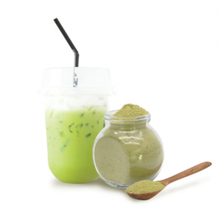 Premix minuman susu matcha siap pakai.