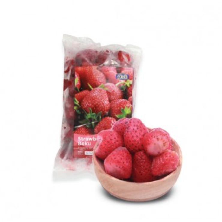 Buah stroberi beku dengan ukuran yang cukup dan homogen, tingkat kematangan optimal, telah dibersihkan dan diseleksi dari buah yang rusak. Pembekuan dengan sistem IQF yang membantu menjaga rasa, aroma dan juiceness buah stroberi.