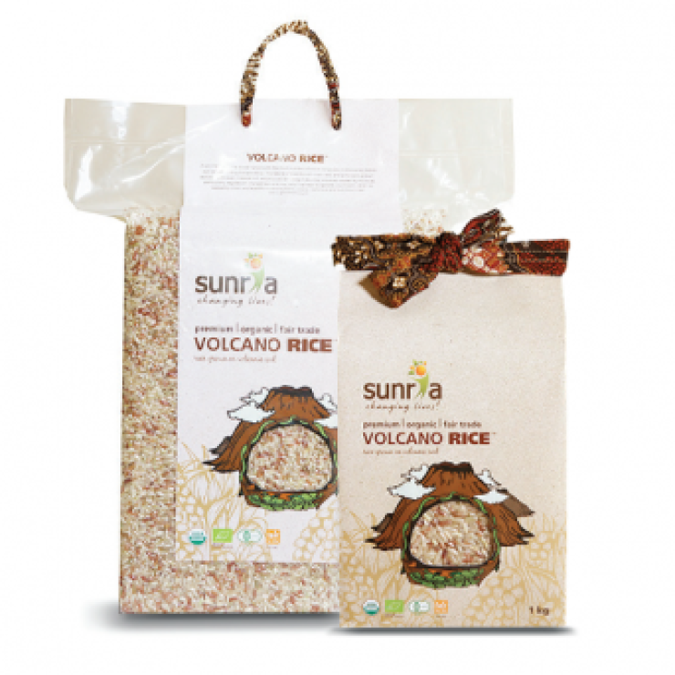 100% Beras organic yang tersertifikasi secara International. Beras Volcano Sunria kaya akan mineral seperti magnesium, mangan, dan seng. Tumbuh di tanah vulkanik di area Jawa Tengah terdiri dari beras coklat, pink, dan merah yang baik untuk vitalitas dan kesehatan anda! Memiliki aroma harum yang khas, cocok untuk applikasi Salad, nasi goreng, pilafs, nasi claypot, atau sebagai makanan sehari-hari!
