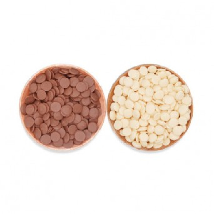 Cokelat compound bercita rasa Eropa dari lemak nabati berbentuk koin, dengan titik leleh tinggi. Sangat cocok digunakan untuk ganache, cream, membentuk figur karakter dll.