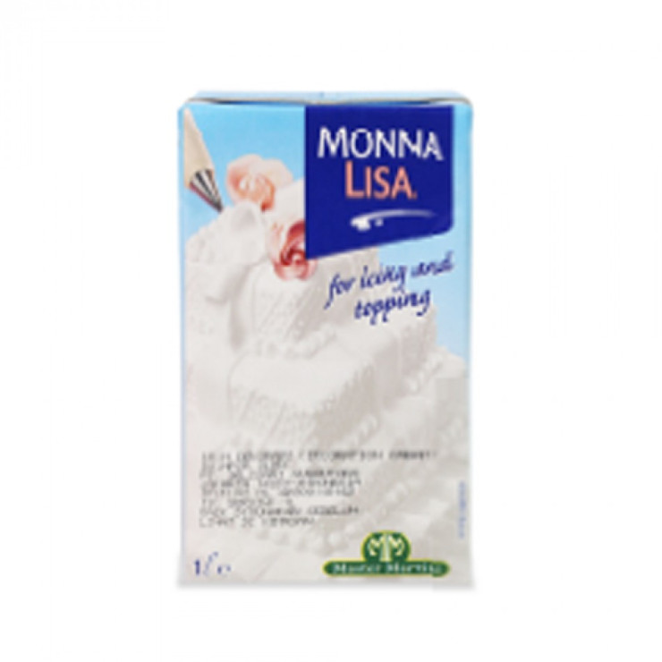 Whipping Cream (Krim Kocok) UHT manis yang kokoh dan memiliki warna putih mengkilap, dengan perisa vanila.