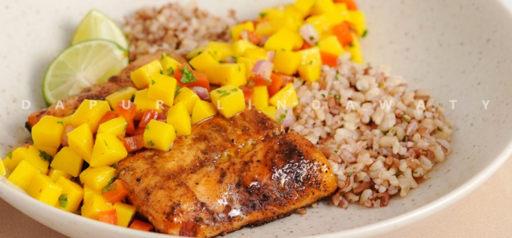 Siapkan Atlantic Salmon, beri garam, lada hitam, paprika bubuk,cabai bubuk dan bawang putih bubuk, diamkan kurang lebih 15 menit.